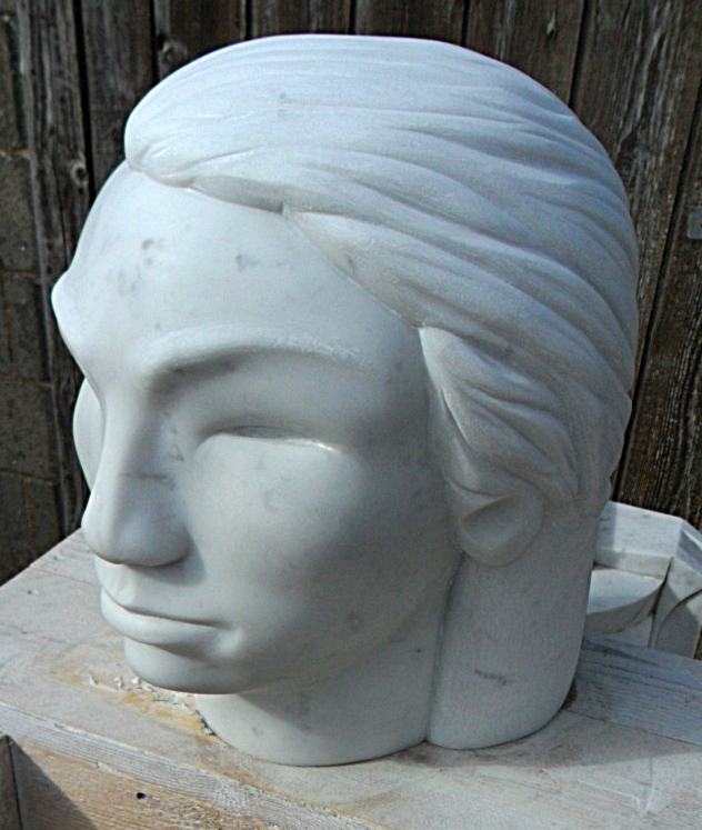 Two heads, carved in marble in Carrara.,Italy, in 2023.